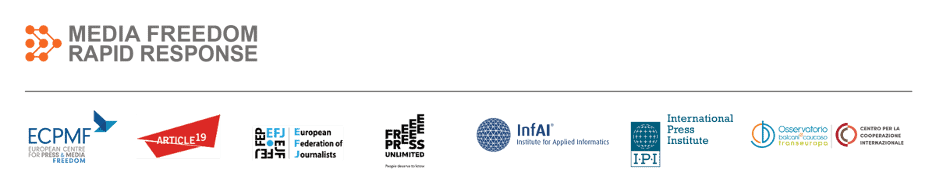 This statement has been coordinated by the Media Freedom Rapid Response (MFRR), which tracks, monitors and responds to violations of press and media freedom in EU Member States and Candidate Countries. This project provides legal and practical support, public advocacy and information to protect journalists and media workers. The MFRR is organised by a consortium led by the European Centre for Press and Media Freedom (ECPMF) including ARTICLE 19, the European Federation of Journalists (EFJ), Free Press Unlimited (FPU), the Institute for Applied Informatics at the University of Leipzig (InfAI), International Press Institute (IPI) and CCI/Osservatorio Balcani e Caucaso Transeuropa (OBCT). The project is co-funded by the European Commission.