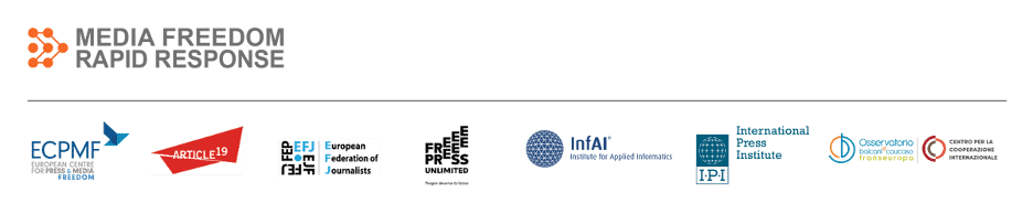 This statement has been coordinated by the Media Freedom Rapid Response (MFRR), which tracks, monitors and responds to violations of press and media freedom in EU Member States and Candidate Countries. This project provides legal and practical support, public advocacy and information to protect journalists and media workers. The MFRR is organised by a consortium led by the European Centre for Press and Media Freedom (ECPMF) including ARTICLE 19, the European Federation of Journalists (EFJ), Free Press Unlimited (FPU), the Institute for Applied Informatics at the University of Leipzig (InfAI), International Press Institute (IPI) and CCI/Osservatorio Balcani e Caucaso Transeuropa (OBCT). The project is co-funded by the European Commission.